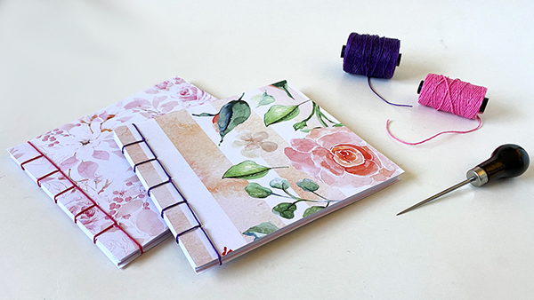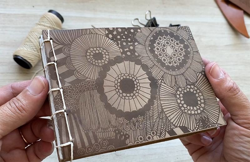En ambos casos, las tapas y las hojas se unen mediante la misma costura visible, manteniendo la coherencia visual del conjunto. En el canal Trama Atelier explico en detalle: