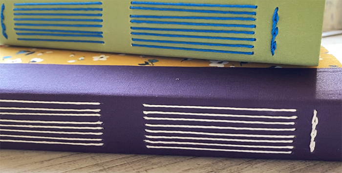 Aporta identidad visual y permite personalizar el cuaderno a través del ritmo, el largo de la puntada y el color del hilo.