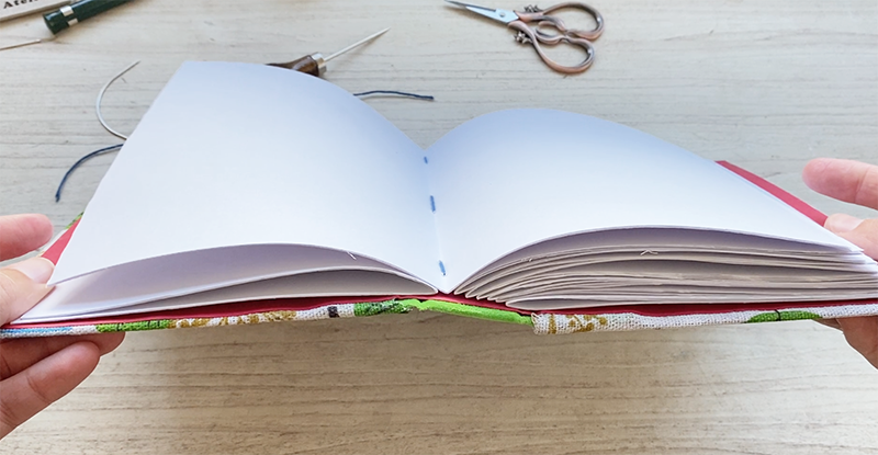 En este sistema, los cuadernillos interiores se cosen directamente a las tapas mediante puntadas largas y visibles. El resultado es una encuadernación firme, flexible y con una apertura completa, algo muy valorado en muchos proyectos creativos.